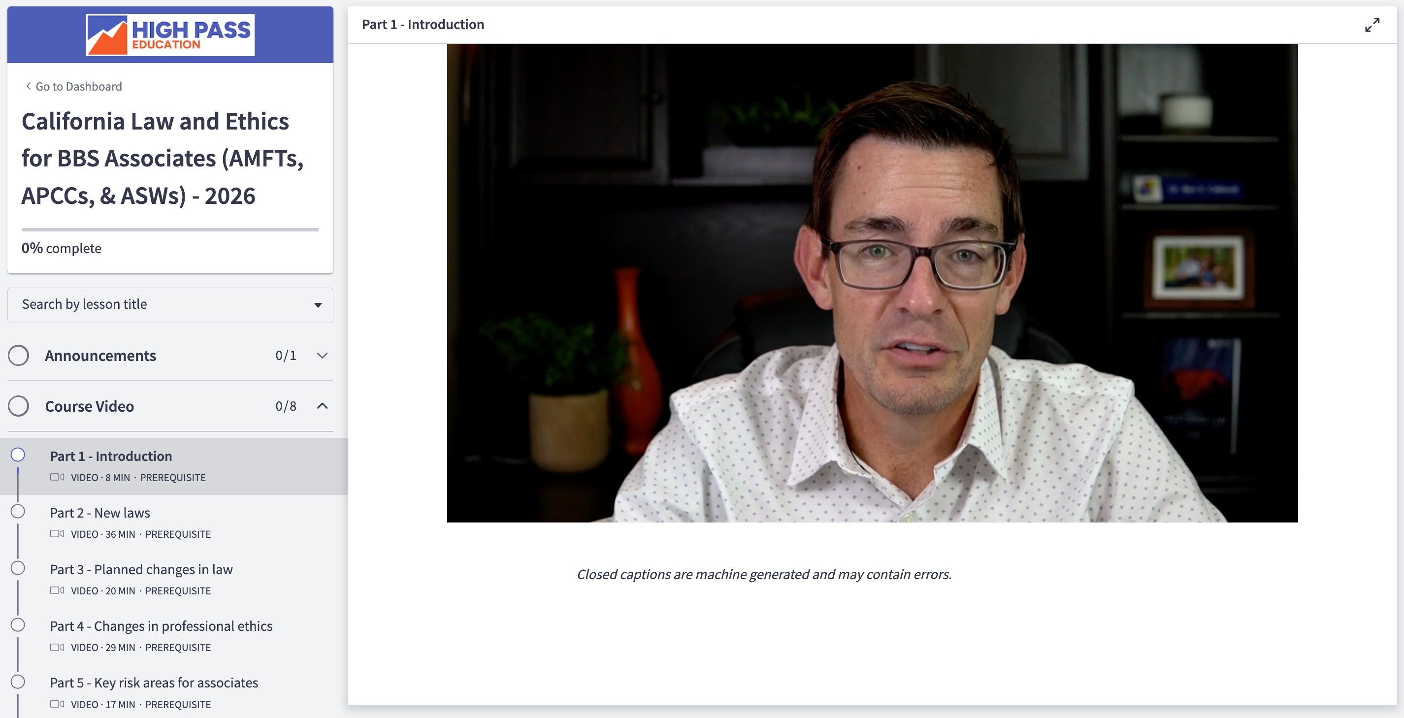 This course highlights recent changes to California state law, as well as common legal and ethical concerns, that impact the work of Associate Marriage and Family Therapists (AMFTs), Associate Clinical Social Workers (ASWs), and Associate Professional Clinical Counselors (APCCs). Specific topics for this edition include 2026 and planned future law changes, key areas of risk for associates, documentation of sensitive information, and working with difficult clients.